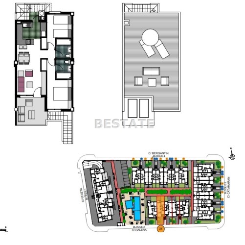 BESTATE NIERUCHOMOŚCI oferuje na sprzedaż nowe 2- poziomowe bungalowy o powierzchni 71 m2 przy plaży w Torre de la Horadada. Posiadają 2 sypialnie i 2 łazienki. Dodatkowo znajduje się w nich solarium o powierzchni 52 m2. Odległość od morza, to niecałe 200m.