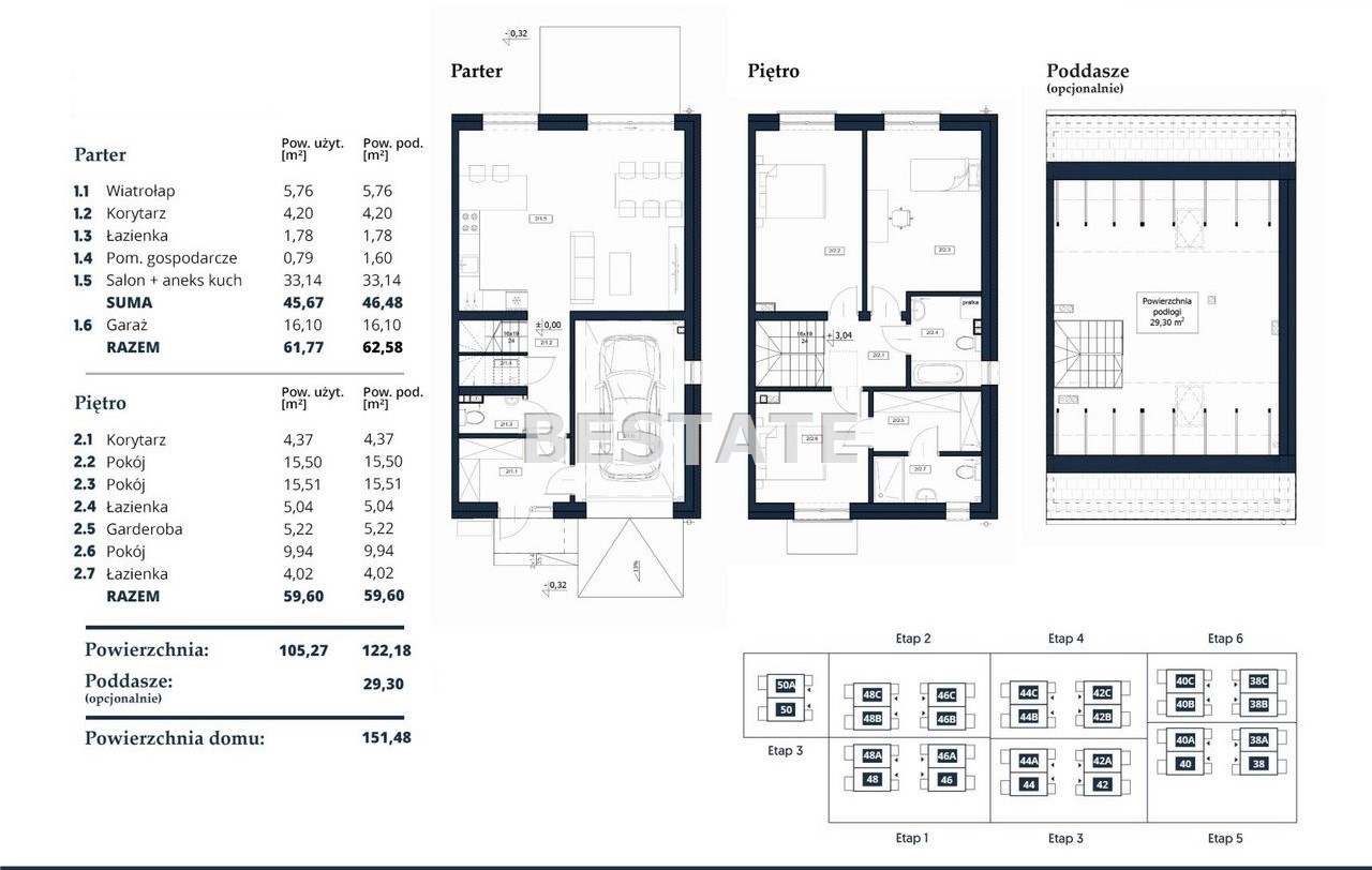 W tej ofercie posiadamy domy o powierzchni 105,27m.kw., w cenie od 1 149 000 zł do 1 499 000 zł.