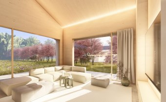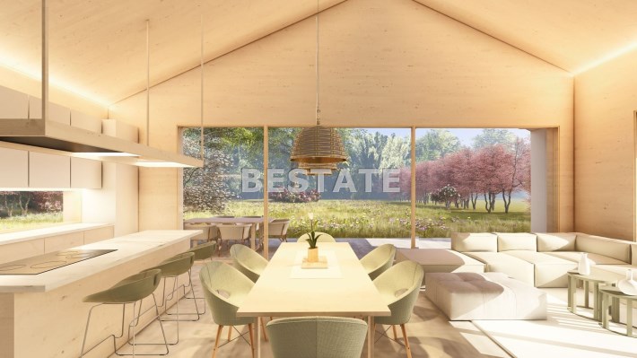 Konstrukcja budynku: ściany, stropy, dach wykonane z prefabrykatów z drewna klejonego konstrukcyjnego CLT, HBE, BSH i KVH