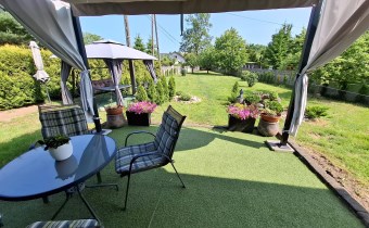 Drugi budynek to dom wolnostojący wybudowany z silikatowej cegły w roku 2006, dach pokryty gontem. Termomodernizacja wykonana 2 lata temu. Dom niepodpiwniczony. Podłogi wykończone panelami oraz terakotą, ściany otynkowane, pomalowane, częściowo kamień ozdobny, tynk ozdobny oraz boazeria. Przed domem taras o powierzchni około 12 m.kw.