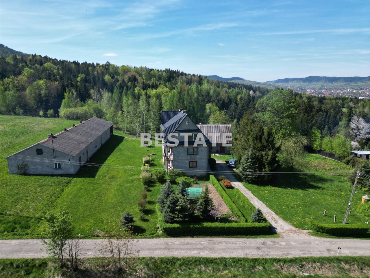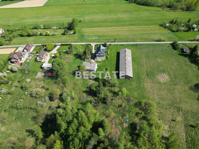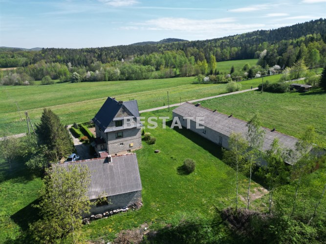 Nieruchomość składa się z budynku mieszkalnego oraz zabudowań gospodarczych (duża hala, garaż, kurnik, drewutnia).