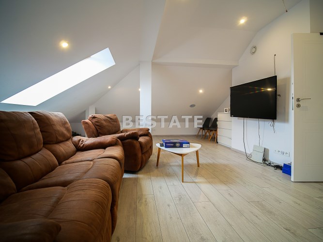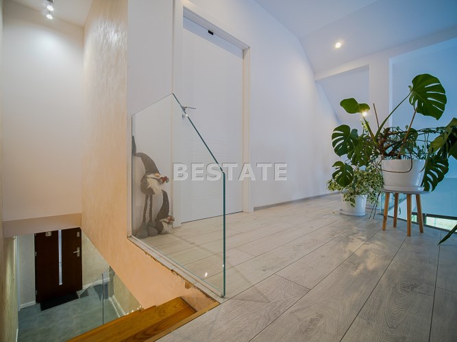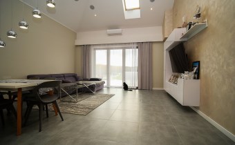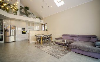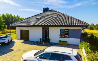 - Dom wykończony w podwyższonym standardzie, wyposażony w klimatyzację zarówno na parterze, jak i poddaszu.