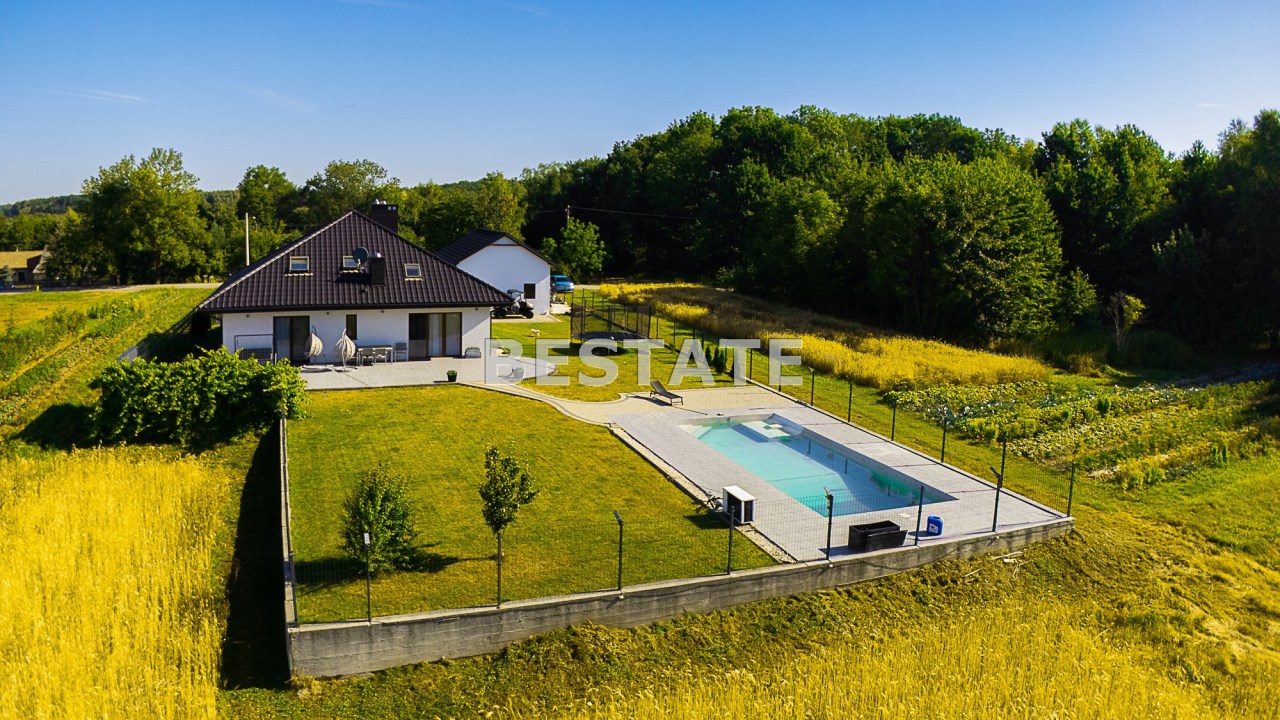 Komfortowy dom parterowy z poddaszem użytkowym, basenem i dużą działką – Lipiny, gm. Dąbrowa Tarnowska