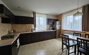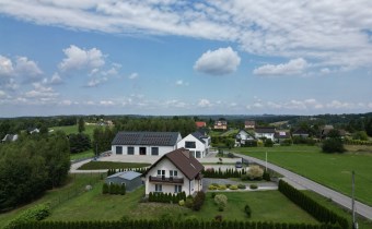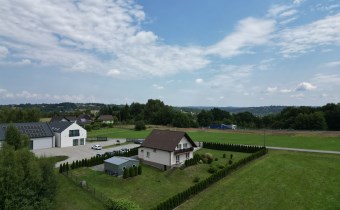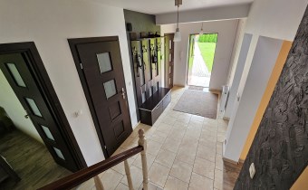 Dom jest gotowy do zamieszkania – wykończony w ciepłym, nowoczesnym stylu. Na podłogach znajdują się panele oraz terakota. W części pomieszczeń zastosowano ogrzewanie podłogowe dla jeszcze większego komfortu.