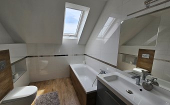 Dwie łazienki, wykończone wysokiej jakości materiałami i elegancką armaturą