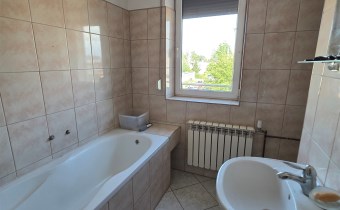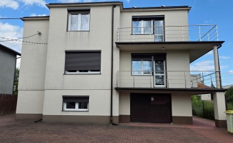 Dom posadowiony od frontu to dwukondygnacyjny budynek podpiwniczony, zbudowany z cegły, ocieplony styropianem 15cm grubości i otynkowany. Budynek z jednospadowym dachem, pokryty papą na którym w 2022 roku zainstalowano panele fotowoltaiczne o mocy 10KW (umowa na starych zasadach). Zarówno na parterze jak i piętrze znajdują się trzy przestronne balkony wyremontowane z aluminiowymi balustradami, o pow. 16m.kw i 11 m.kw. Obecnie do ogrzewania budynku wykorzystuje się gaz ziemny, a w 2020 roku zamontowano nowoczesny piec gazowy dwufunkcyjny.
