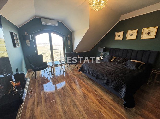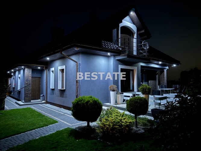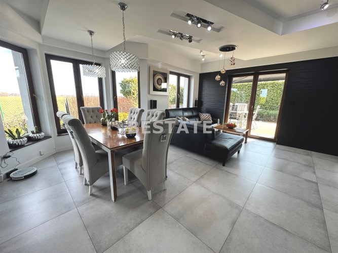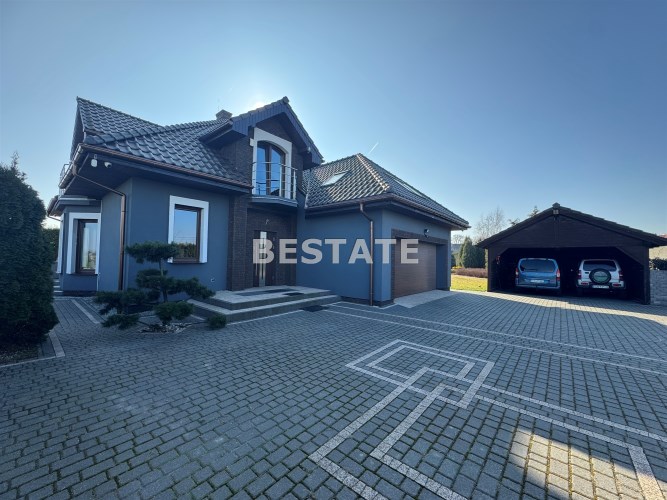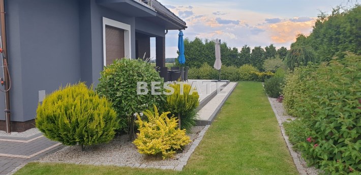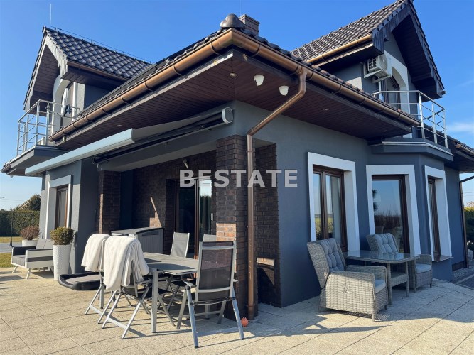 BESTATE nieruchomości Wrocław oferuje do sprzedaży dom wolnostojący o powierzchni użytkowej 196,60 m.kw (w tym garaż 32,80 m.kw) położony na działce o pow. 2197 m.kw., usytuowany w okolicach Gniezna, w zaciszu zieleni w parku krajobrazowym z widokiem na jezioro Lednica. Dom parterowy z poddaszem użytkowym, wybudowany w 2012r. z bloczków porotherm, dach pokryty dachówką ceramiczną, wykończony materiałami wysokiej jakości. Okna drewniane, taras o powierzchni 52 m.kw. Ogrzewanie podłogowe - pompa ciepła, (grzejniki w pokojach) oraz kominek z płaszczem wodnym. Dodatkowo fotowoltaika 10 kw, dzięki czemu dom jest bardzo ekonomiczny w utrzymaniu. Nieruchomość w pełni umeblowana, gustownie wykończona, wyposażenie w cenie zakupu.