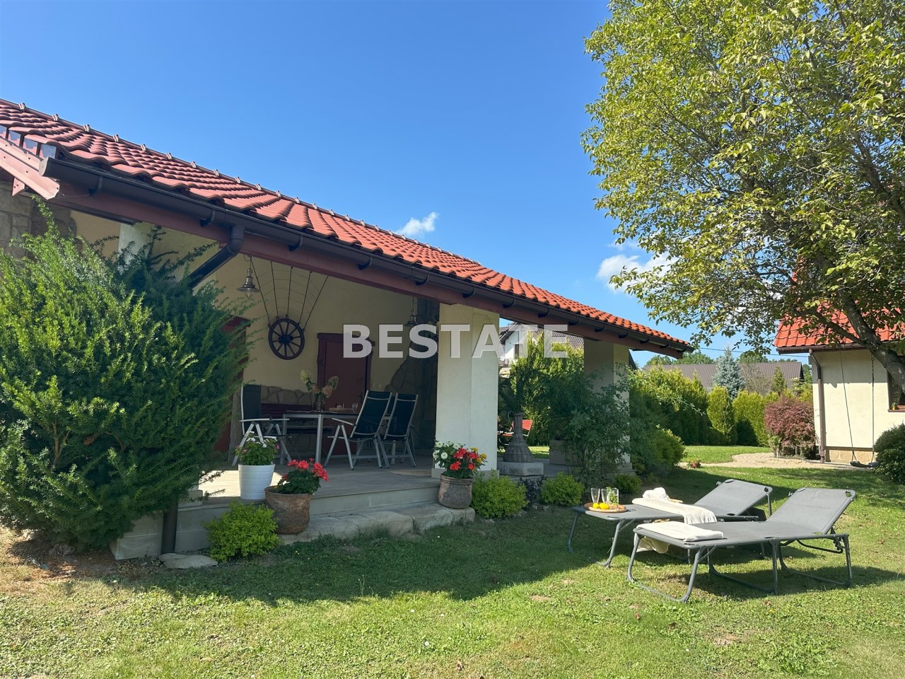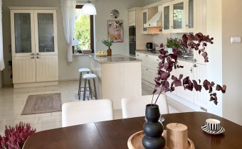 Miejsce idealne do spokojnego odpoczynku i pracy wśród zieleni. Malowniczo zagospodarowany ogród oraz fakt, że część dzienna domu otwarta jest na zieloną przestrzeń, dają dużo prywatności.