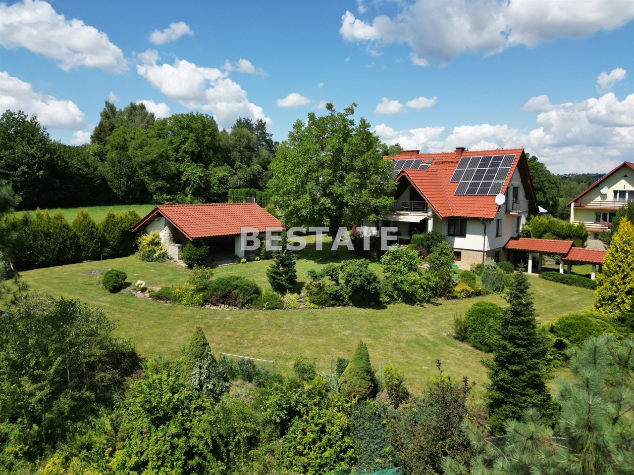 Na sprzedaż wyjątkowa nieruchomość, która przeszła gruntowny remont w latach 2002-2004, a od tego czasu była kilkukrotnie modernizowana. Obecnie dom jest wyposażony w panele fotowoltaiczne, pompę ciepła, ekologiczną oczyszczalnię, a w garażu znajduje się ładowarka do samochodów elektrycznych.