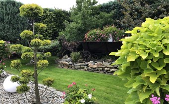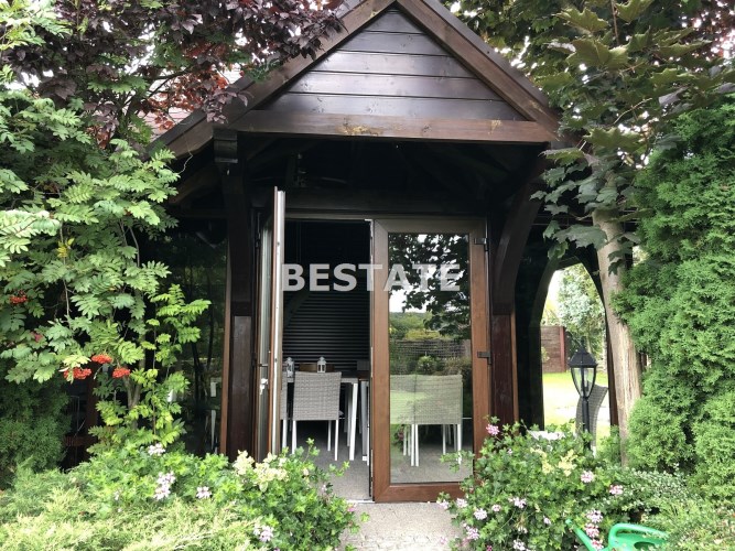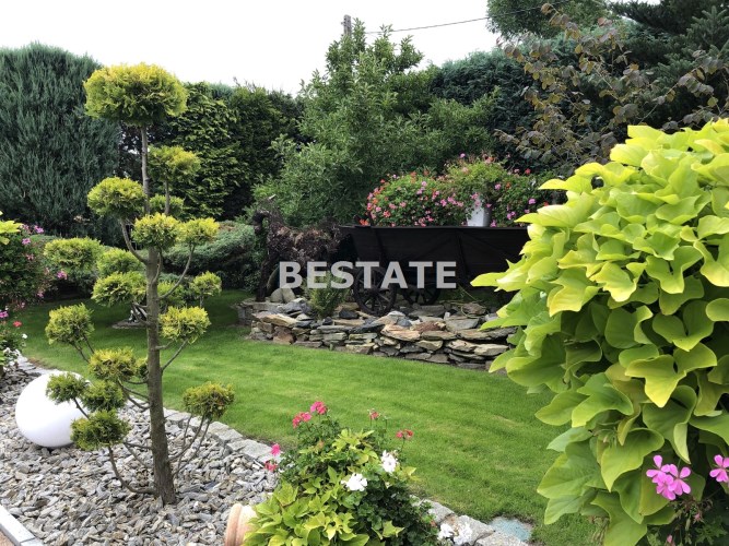 Ogród pięknie zagospodarowany z licznymi nasadzeniami, dodatkową zabudowaną kuchnią letnią i miejscem na grilla, paleniskiem. W całym ogrodzie rozprowadzone nawadnianie, woda ze studni.
