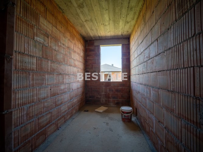 Nieruchomość jest w stanie surowym otwartym, co pozwala na dowolną aranżację wnętrz według własnych upodobań. Na działce dostępne są wszystkie media: prąd, gaz oraz woda. Dodatkowo istnieje opcja zakupu z wstawionymi oknami za dopłatą 30 000 zł.