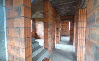 Sprzedam wolnostojący dom dwukondygnacyjny o łącznej powierzchni 174 m. kw. usytuowany pod lasem, w zielonej, cichej okolicy domów jednorodzinnych i pól w odległości 2,5 km od centrum Obornik Śląskich, na działce o powierzchni 1100 m.kw. Dom jest w stanie surowym według projektu biura Archon (Dom w złoci). Parter domu składa się z dużego salonu z jadalnią o pow. 22 m.kw. połączonego z kuchnią o pow.10 m.kw., z którego jest wyście na ogród, pokoju, łazienki, wiatrołapu, pomieszczenia gospodarczego, hallu i kotłowni. Na piętrze domu znajdują się trzy sypialnie w tym jedna garderobą oraz łazienka. Dom zbudowany jest z bloczków ceramicznych Porotherm. Działka częściowo ogrodzona. Prąd na działce. Studnia. Możliwość wykończenia po uzgodnieniu szczegółów.