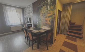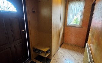 Dom z 1939r. zbudowany z cegły, docieplony styropianem 10 cm, dach pokryty papą,  składa się z salonu z kuchnią w aneksie o powierzchni 20,5 m.kw, sypialni 10 m.kw, łazienki z wc o powierzchni 7 m.kw, korytarza oraz kotłowni. Na piętrze znajdują się dwie sypialnie po 12 m.kw po podłodze, korytarz i garderoba. Na piętrze wysokość pomieszczeń 2,2 m.