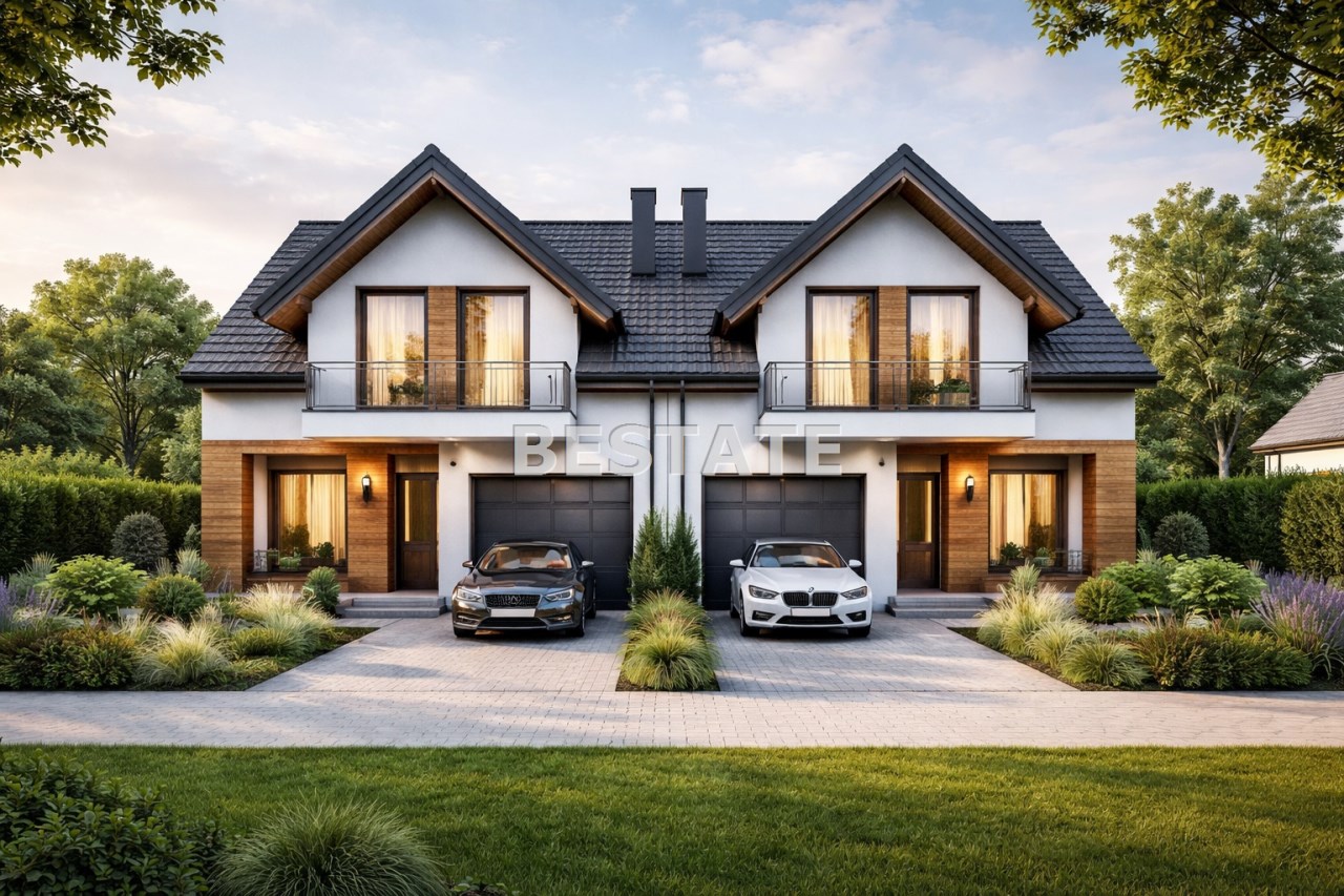 Bestate Nieruchomości oferuje do sprzedaży domy w zabudowie bliźniaczej oraz domy szeregowe na staranie zaprojektowanym osiedlu, na którym każdy budynek zbudowany będzie z wysokiej jakości materiałów, wyposażony w pompę ciepła, siedmiokomorowe, trzyszybowe okna, centralną biologiczną oczyszczalnię. Dodatkowo przygotowana instalacja pod fotowoltaikę, rekuperacja, światłowód. Możliwość zaadoptowania poddasza o pow. 26m.kw. i wygospodarowania dodatkowej powierzchni mieszkaniowej.