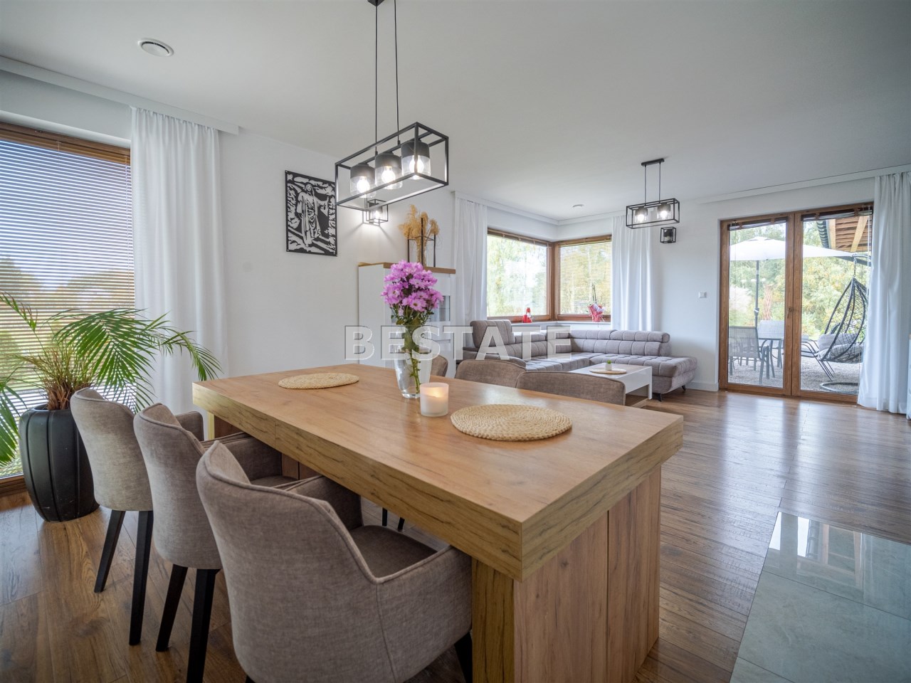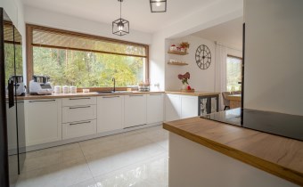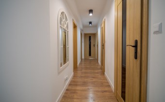 Wnętrze jest przytulne, jasne i urządzone z dbałością o detale. Zastosowano wysokiej jakości materiały wykończeniowe, a całość utrzymana jest w spójnej, nowoczesnej stylistyce.