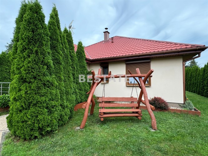 Zadbany parterowy dom o powierzchni użytkowej 101,30 m² wyposażony i gotowy do zamieszkania, z pięknym ogrodem w zielonej okolicy + budynek gospodarczy 54,25 m² (garaż), piękna działka 2964 m.kw.