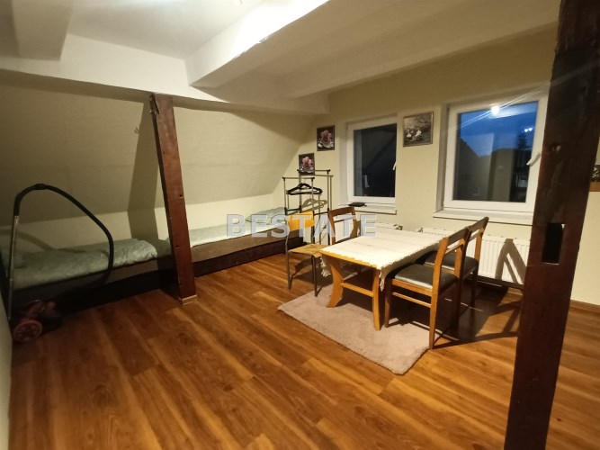 -Mieszkanie na 1 piętrze o pow. ok. 60 m.kw, składające się z dwóch dużych pokoi, kuchni i dużej łazienki (ok. 10 osób) -