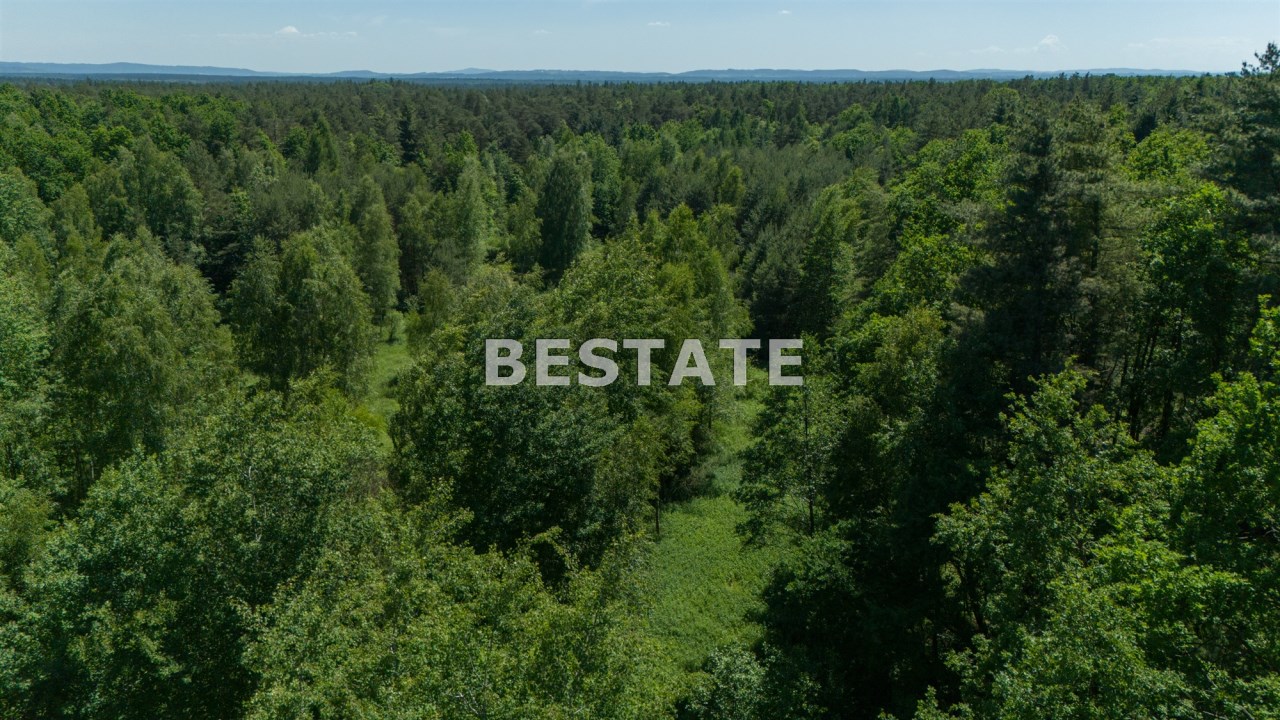 Działka zbliżona kształtem do prostokąta o wymiarach: szerokość frontu 106 m, głębokość 136 m. Nieruchomość częściowo zalesiona.