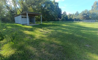 Budynek gospodarczy/garaż o pow. ok.45 m.kw. zbudowany z płyt betonowych, dach drewniany - stan do wykończenia (wylewka, okna, drzwi/brama). Do budynku jest doprowadzony prąd.
