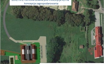 Na działce zlokalizowane były budynki folwarczne, których lokalizacja stanowi podstawę do nowej zabudowy zgodnie z koncepcją zagospodarowania, przy zachowaniu warunków MPZP. Nieruchomość pozbawiona zabudowy kubaturowej, na parceli znajduje się pozostałość po budynku gospodarczym.