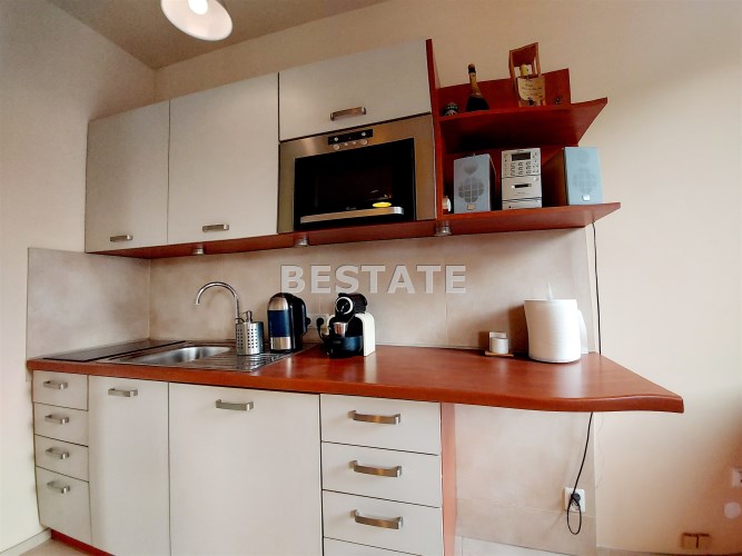 Bestate Nieruchomości oferuje do wynajmu przestrzenny i pomysłowo zaaranżowany lokal o powierzchni 45 m.kw, usytuowany na piątym piętrze w pięciopiętrowym bloku z windą. Nieruchomość składa się z dużej, otwartej przestrzeni z pomieszczeniem socjalnym, oddzielonego przesuwanymi drzwiami pokoju, oraz łazienki. Pojemna szafa w zabudowie. Kuchnia wyposażona w płytę elektryczną, małą lodówkę, zlew oraz mikrofalówkę. Ogrzewanie miejskie. Okna pcv z roletami wewnętrznymi oraz z ekspozycją na wschód. Dodatkowo balkon. Miejsca postojowe ogólnodostępne za szlabanem osiedlowym oraz na ulicy. W pobliżu znajdują się udogodnienia typu sklepy, poczta, restauracja, kawiarnia, różnego rodzaju usługi. Rejon dobrze skomunikowany - w pobliżu znajdują się przystanki autobusowe.