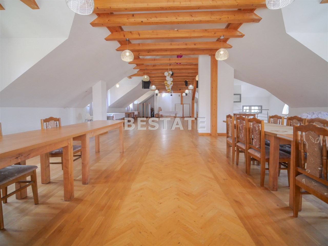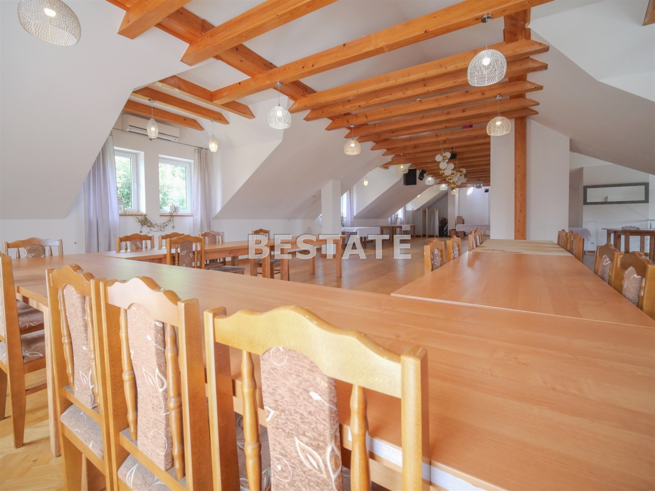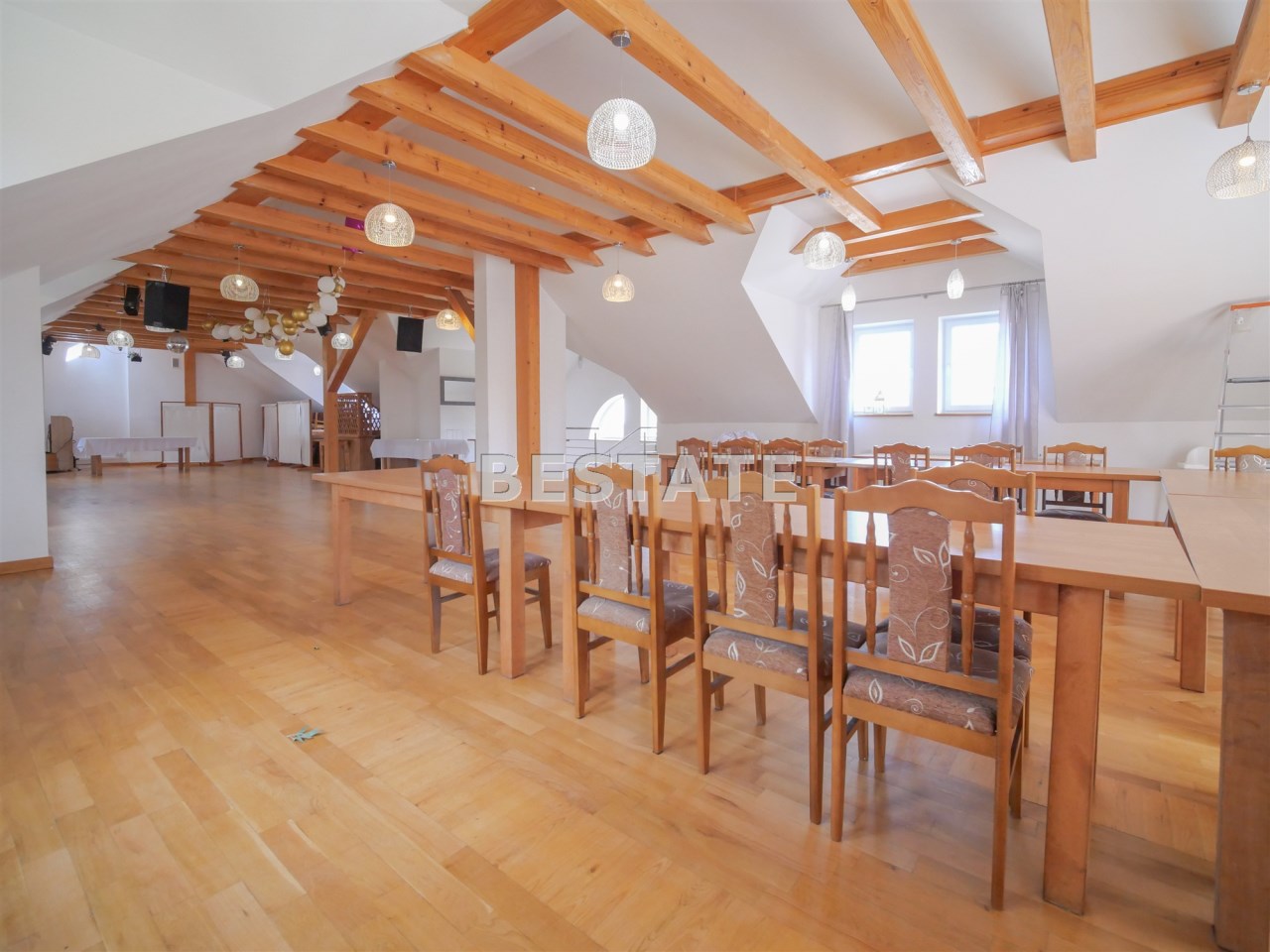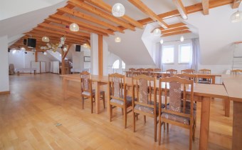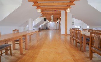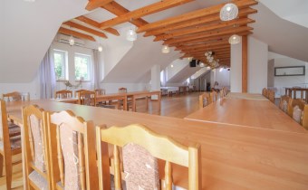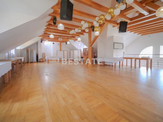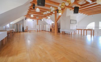 Sala do imprez okolicznościowych: Przestrzeń mogąca pomieścić do 120 osób, z wydzieloną częścią do spożywania posiłków oraz parkietem do tańczenia. Doskonała na wesela, bankiety, konferencje, szkolenia czy duże spotkania firmowe. Może być również adaptowana na przestronne biura.