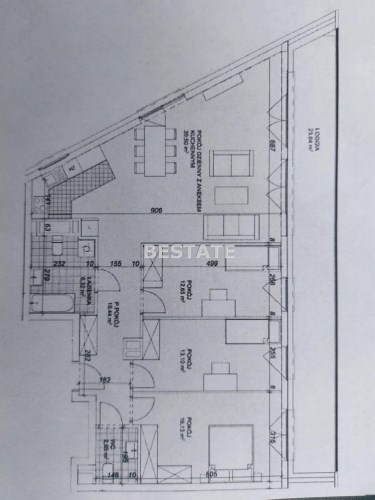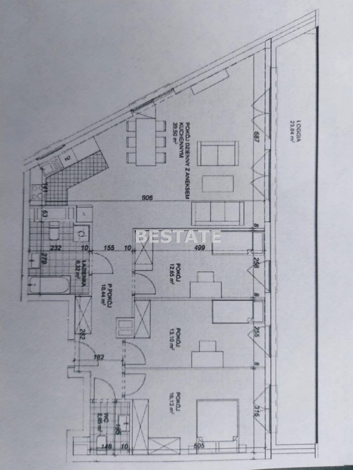 Prezentowane mieszkanie o powierzchni użytkowej 100,99 m.kw,  składa się z salonu z aneksem kuchennym o powierzchni 39,50 m.kw, trzech sypialni o pow. 16,13 m.kw + 13,10 m.kw + 12,65 m.kw, łazienki o pow. 6,32 m.kw, wc o pow. 2,85 m.kw oraz przedpokoju o pow. 10,44 m.kw.