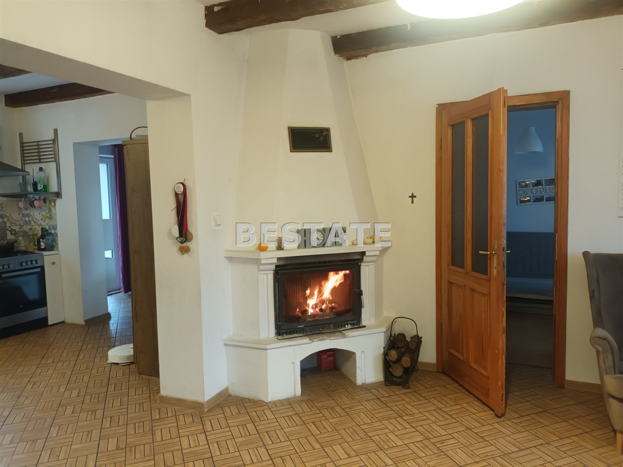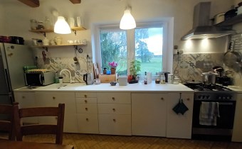 Na podłogach deska i kafle. Okna PCV. Ogrzewanie- kominek z rozprowadzeniem oraz grzejnik elektryczny. Podgrzewanie wody- bojler elektryczny przepływowy 30kW. Wyposażenie mieszkania do uzgodnienia.