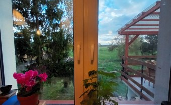 Dom usytuowany jest w pięknej, malowniczej lokalizacji, na skraju wsi Pększyn. Mieszkanie oba tarasy i kuchnię ma położone z widokiem na pola i lasy w oddali. W okolicy znajduje się jezioro oraz nowa świetlica i nowoczesny plac zabaw dla dzieci.
