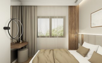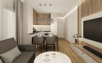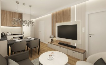 Przykładowe mieszkanie F.17.I.  ma powierzchnię 48,95 m2 i znajduje się na drugim piętrze. Lokal składa się z salonu i aneksu kuchennego, dwóch pokoi  oraz łazienki. Wystawa okienna w stronę południową z dużym tarasem o powierzchni 42,46m2.