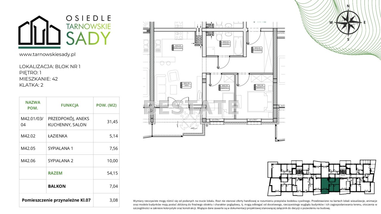 54,15 m2 i znajduje się na pierwszym piętrze. Lokal składa się z salonu, aneksu kuchennego i przedpokoju o łącznej powierzchni