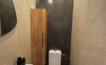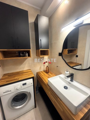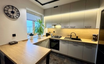 Mieszkanie po generalnym remoncie. Ściany wykończone gładziami, na podłogach trwałe, laminowane, wodoodporne panele typu Quick-Step. W kuchni włoski gres Imda, meble na wymiar wykończone płytą odporną na użytkowanie- lakierowany mat Egger, oraz sprzęt agd: płyta gazowa, piekarnik, zmywarka, lodówkę oraz lodówkę do wina. Wypoczynek w salonie pokryty grubą, plamoodporną tkaniną Diosa. Łazienka wykończona glazurą i terakotą. Drzwi wejściowe firmy Porta antywłamaniowe, w pokojach drzwi marki DRE bezprzylgowe. Energooszczędna i cicha klimatyzacja Rotenso, a także oświetlenie trzystrefowe Azzardo z regulacją barwy i natężenia światła.