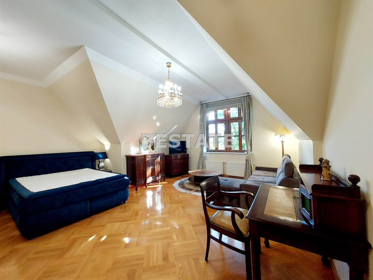 Wynajmę przestrzenny i pięknie zaaranżowany apartament o powierzchni 82 m.kw, usytuowany na trzecim piętrze w trzypiętrowej luksusowej, odrestaurowanej willi z 1896r. w Kątach Wrocławskich. Nieruchomość składa się z kuchni połączonej z jadalnią, pokoju, przedpokoju i łazienki z wanną, wykończonej wysokiej jakości marmurem. Kuchnia wyposażona z zmywarkę, płytę elektryczną, lodówkę. Okna nowe, drewniane z ekspozycją na wschód. Brak balkonu. Apartament częściowo umeblowany, jednak istnieje możliwość dowolnej aranżacji. Do dyspozycji monitorowane miejsce parkingowe. Teren zamknięty. Willa z kompleksem parkowym, stawem, fontanną oraz basenem. Dodatkowo w ogrodzie część wypoczynkowa z możliwością relaksu i zrobienia grilla. Okolica spokojna, zielona, w pobliżu znajdują się udogodnienia typu park, sklepy, poczta, restauracja. Rejon dobrze skomunikowany - w pobliżu znajdują się przystanki autobusowe, dworzec autobusowy i kolejowy. Doskonały wyjazd na autostradę A4. Dojazd do centrum Wrocławia zajmuje około 25 minut.