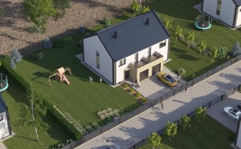 Dom jednorodzinny, dwukondygnacyjny łączy w sobie funkcjonalność, nowoczesność i wysoką jakość wykonania. W domu wyraźne dwie strefy: