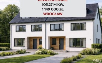 Bestate Nieruchomości Wrocław oferuje do sprzedaży pięciopokojowy, przestronny dom typu bliźniak o powierzchni 105,27 m.kw., działka o powierzchni 187,77 m.kw., usytuowany na granicy Wrocławia, w zielonej i spokojnej okolicy, na osiedlu zamkniętym.