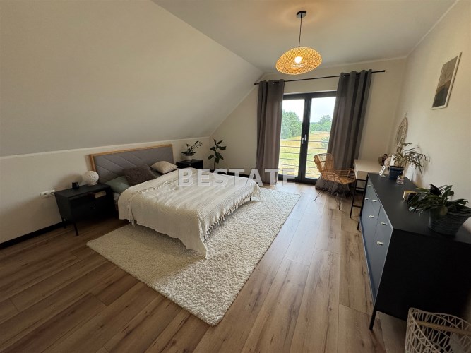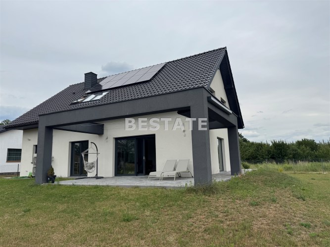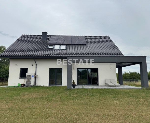 Szukasz domu z dala od miejskiego zgiełku ? w otoczeniu zieleni, a jednocześnie kilka minut od  Dłutowa i kilkanaście od Pabianic i szybkim dojazdem do S8. Mamy taki. Na działce  o powierzchni 1200 m.kw usytuowany umeblowany dom jednorodzinny parterowy z poddaszem użytkowym o powierzchni użytkowej 184,18 m.kw., (w tym powierzchni  mieszkalna 157,05 m.kw. + garaż w bryle domu o pow. 19,38 m.kw. + kotłownia) Dom wybudowany  w 2023 roku, zbudowany z bloczków betonowych, ocieplony styropianem o gr. 20cm, otynkowany i pomalowany. Na dachu położona dachówka ceramiczna. Stolarka okienna pcv, drzwi wejściowe antywłamaniowe. Podłogi wykończone panelami  i terakotę, na ścianach gładź gipsowa. Do ogrzewania całego domu zastosowano pompę ciepła. Ogrzewanie podłogowe, rekuperacja, fotowoltaika, przydomowa oczyszczalnia. Dom bardzo ekonomiczny w użytkowaniu.