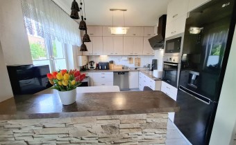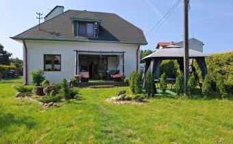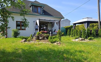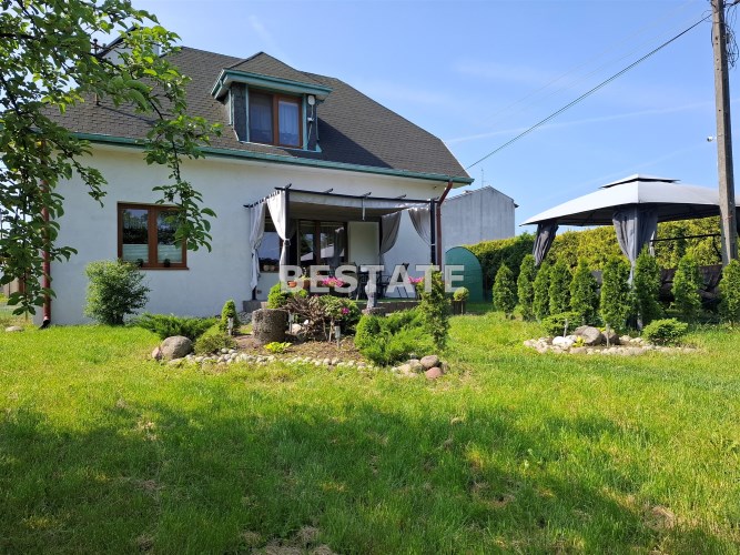 Drugi budynek to dom wolnostojący wybudowany z silikatowej cegły w roku 2006, dach pokryty gontem. Termomodernizacja wykonana 2 lata temu. Dom niepodpiwniczony. Podłogi wykończone panelami oraz terakotą, ściany otynkowane, pomalowane, częściowo kamień ozdobny, tynk ozdobny oraz boazeria. Przed domem taras o powierzchni około 12 m.kw.