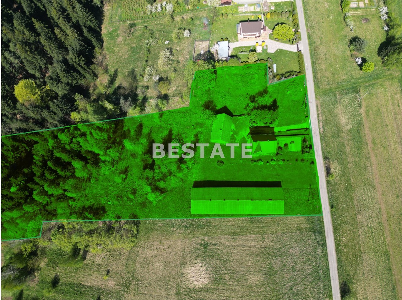 Nieruchomość składa się z budynku mieszkalnego oraz zabudowań gospodarczych (duża hala, garaż, kurnik, drewutnia).
