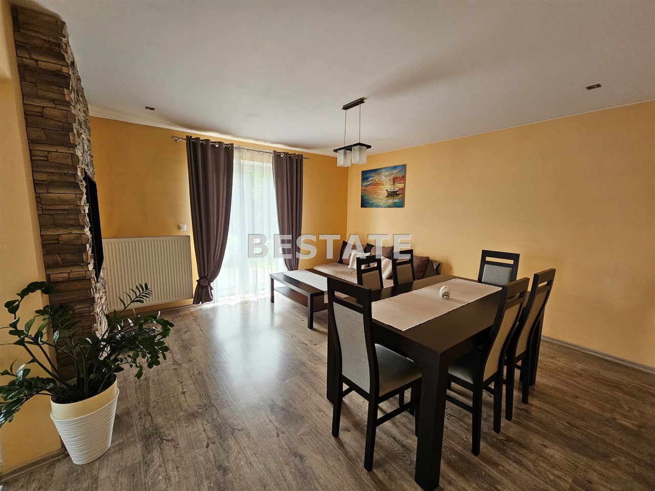 Przestronny salon z wydzieloną jadalnią – idealne miejsce na rodzinne spotkania i przyjęcia