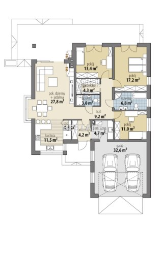 Dom zbudowany według projektu Fabia V, zachwyca nie tylko estetyką, ale i funkcjonalnością. Dom o powierzchni 146,50 m² został zaprojektowany z myślą o komforcie życia. Efektowny wygląd zewnętrzny i klarowny układ pomieszczeń wewnątrz czyni go niezwykle interesującym.