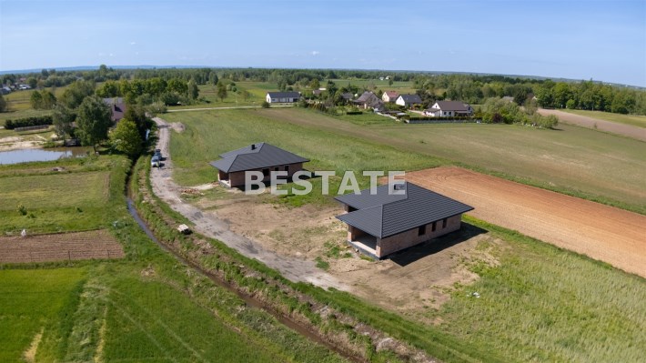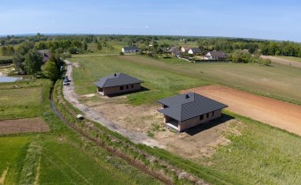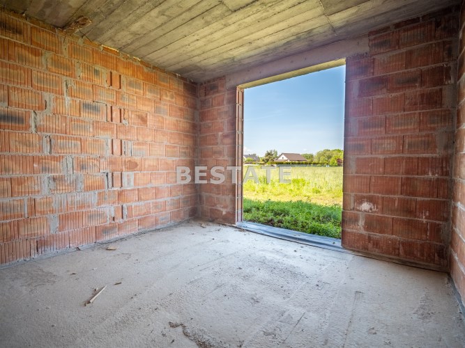 Nieruchomość jest w stanie surowym otwartym, co pozwala na dowolną aranżację wnętrz według własnych upodobań. Na działce dostępne są wszystkie media: prąd, gaz oraz woda. Dodatkowo istnieje opcja zakupu z wstawionymi oknami za dopłatą 30 000 zł.