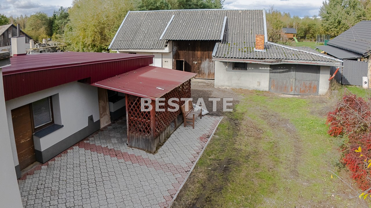 część gospodarcza przylegająca do domu (ok. 74 m²) – idealny pod biuro, sklep lub działalność usługową,