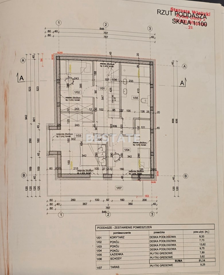 - poddasze z trzema sypialniami i dużą łazienką.