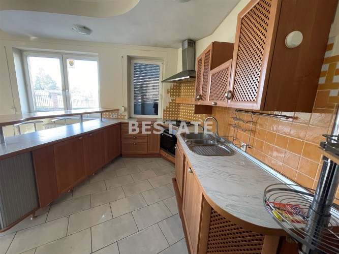 BESTATE Nieruchomości Pabianice oferuje do sprzedaży dom wolnostojący, parterowy z niewielkim poddaszem o powierzchni użytkowej 177,98 m.kw., usytuowany w Pabianicach bezpośrednio przy drodze na działce o powierzchni 772 m.kw.Dom  bardzo funkcjonalny, składa się z salonu z kuchnią w aneksie (52,3 m.kw), trzech sypialni ( 15,44 m.kw, 13,33 m.kw, 9,31 m.kw.), dwóch łazienek 4,6 m.kw i 6,7 m.kw ( jedna z nich przynależy do pokoju ),przedpokój 5,4 m.kw połączony z hallem 18,5 m.kw.