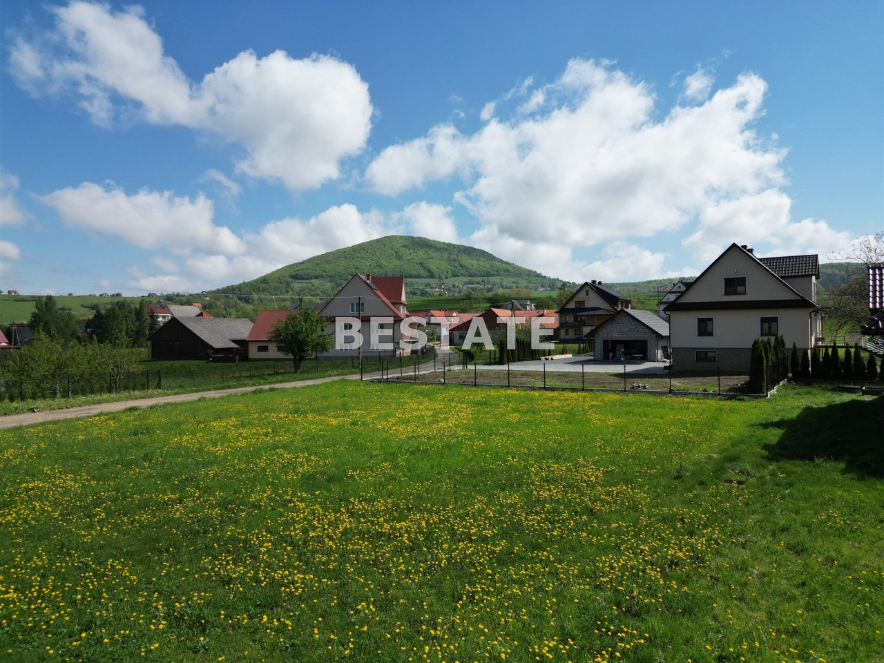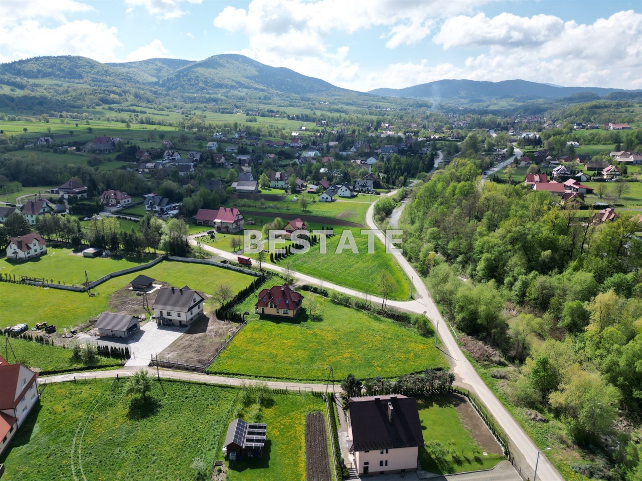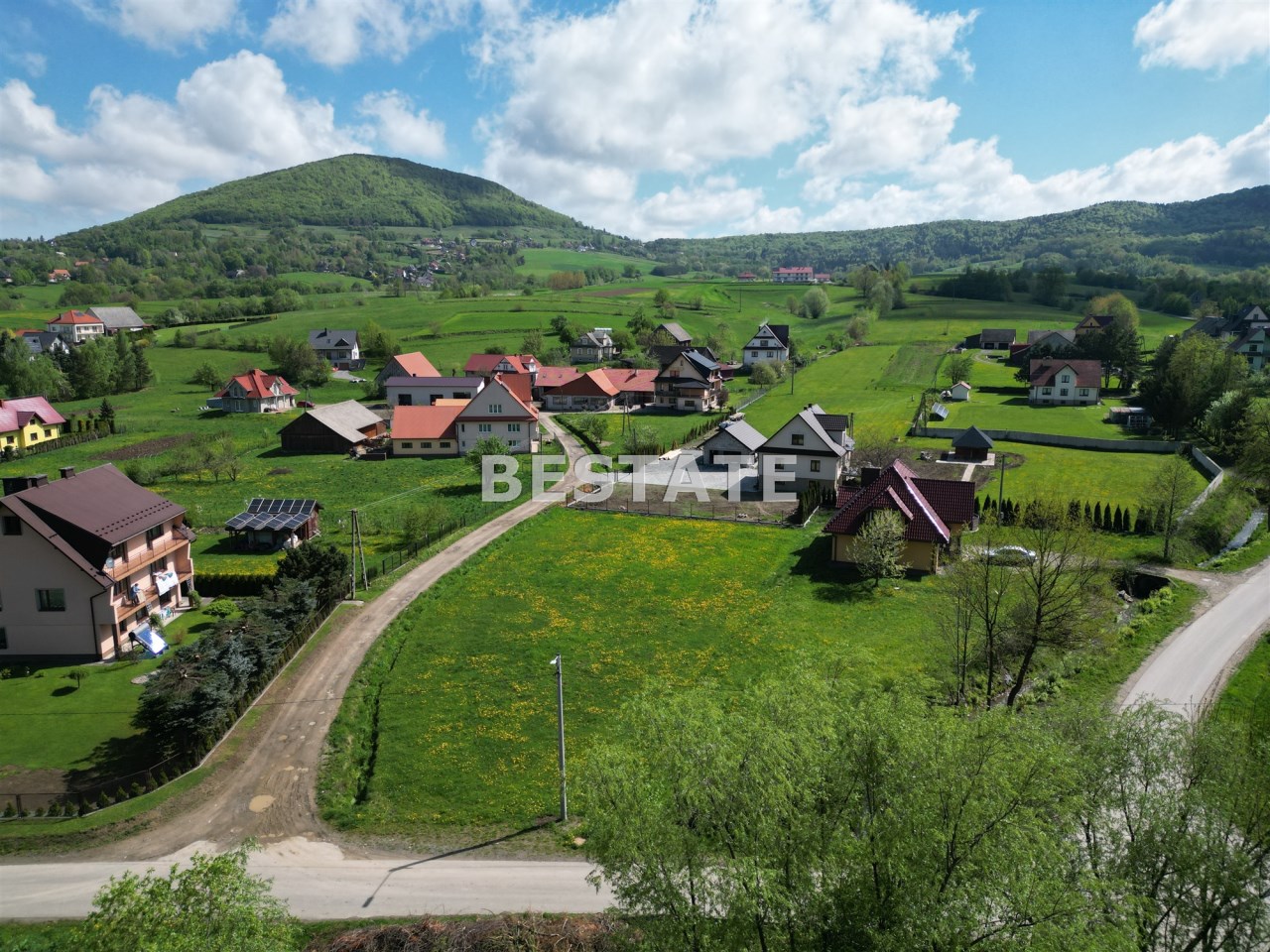 Działka przylega do asfaltowej drogi gminnej, a drugą krawędzią do wewnętrznej drogi prywatnej. To daje możliwość podziału i wybudowania dwóch domów. Działka jest płaska, świetnie nasłoneczniona i posiada piękne widoki na otaczające wzniesienia i lasy.