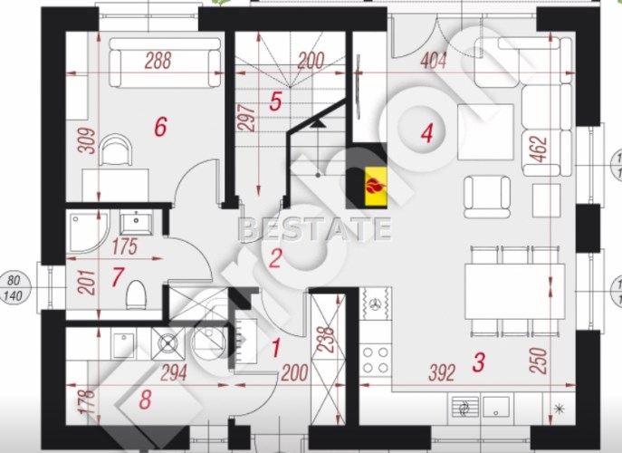 Rooms area 18+15+11+9+8 m2