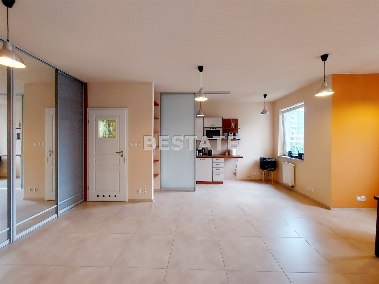 Bestate Nieruchomości oferuje do wynajmu przestrzenny i pomysłowo zaaranżowany lokal o powierzchni 45 m.kw, usytuowany na piątym piętrze w pięciopiętrowym bloku z windą. Nieruchomość składa się z dużej, otwartej przestrzeni z pomieszczeniem socjalnym, oddzielonego przesuwanymi drzwiami pokoju, oraz łazienki. Pojemna szafa w zabudowie. Kuchnia wyposażona w płytę elektryczną, małą lodówkę, zlew oraz mikrofalówkę. Ogrzewanie miejskie. Okna pcv z roletami wewnętrznymi oraz z ekspozycją na wschód. Dodatkowo balkon. Miejsca postojowe ogólnodostępne za szlabanem osiedlowym oraz na ulicy. W pobliżu znajdują się udogodnienia typu sklepy, poczta, restauracja, kawiarnia, różnego rodzaju usługi. Rejon dobrze skomunikowany - w pobliżu znajdują się przystanki autobusowe.