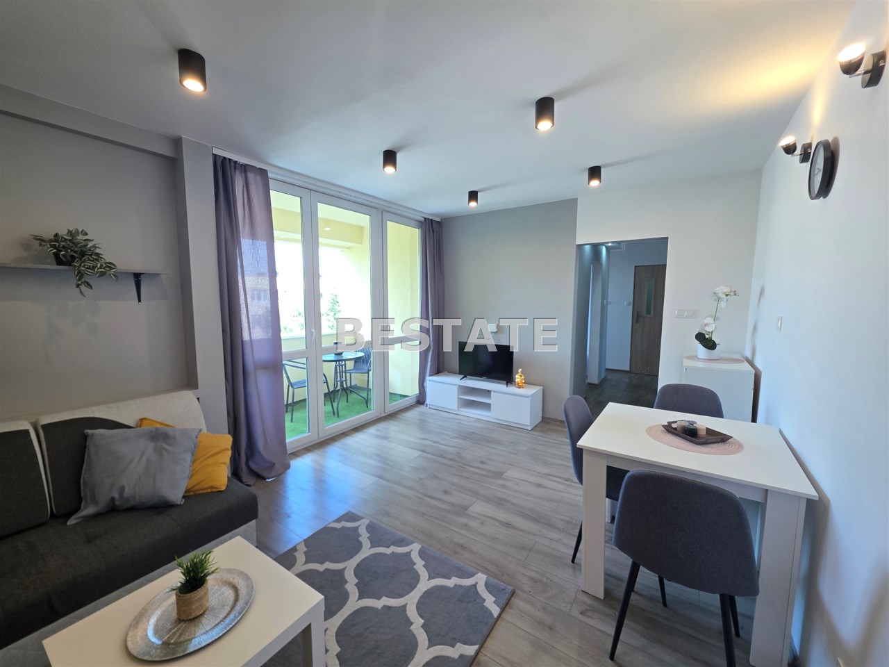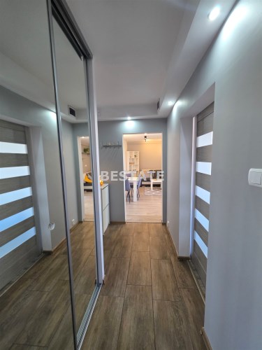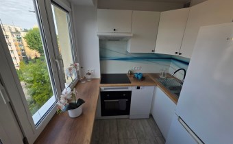 Mieszkanie po gruntownym remoncie, nie wymaga nakładów finansowych. Właściciel sprzedaje lokal z pełnym wyposażeniem. W pokoju na podłodze położono panele, na ścianach gładź gipsową pomalowana. W kuchni, łazience i przedpokoju położono płytki i terakotę. Wszystkie pomieszczenia gustownie i funkcjonalnie zaaranżowano i wyposażono w nowe meble. Kuchnia zaopatrzona w nowoczesny sprzęt AGD z płytą indukcyjną, zmywarką i lodówką. W łazience znajduje się pralka, umywalka, kabina prysznicowa i szafki łazienkowe.