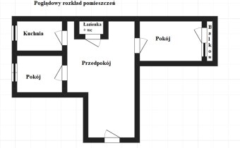 Mieszkanie składa się z dwóch pokoi o powierzchni ok.21 m.kw. i ok.14 m.kw, kuchni o pow. ok.10 m.kw, łazienki z wc o pow. ok. 3,5 m.kw. oraz przedpokoju o pow. ok. 7,9 m.kw.