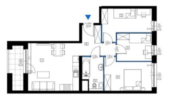 Prezentowane mieszkanie składa się z salonu z aneksem kuchennym o pow. 23,87 m.kw, dwóch sypialni o pow. 10,12 m.kw i 8,82 m.kw., łazienki z wc o pow. 4 m.kw, przedpokoju o pow. 9,63 m.kw oraz balkonu typu loggia o pow. 13,50 m.kw.